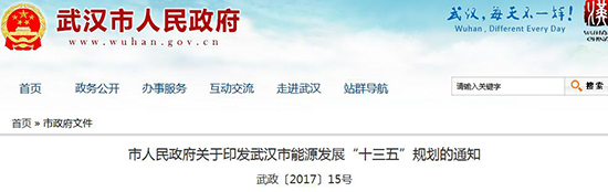 武漢市能源發展“十三五”規劃