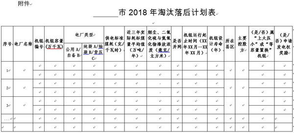 二、嚴格執(zhí)行國家及我省制定的煤電淘汰落后標準,結(jié)合各市前期統(tǒng)計的“十三五”期間淘汰機組的摸底情況,對轄區(qū)內(nèi)煤電機組進行嚴格篩查,根據(jù)篩查情況認真填報《 ? ?市2018年淘汰落后計劃表》,報送計劃中要說明列入淘汰計劃機組是否申請發(fā)電權(quán)獎勵。于2018年1月底前將本市2018年電力行業(yè)淘汰落后計劃以正式文件報省經(jīng)信委。