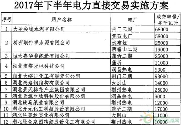 湖北發(fā)布:《2017年下半年電力直接交易實(shí)施方案》