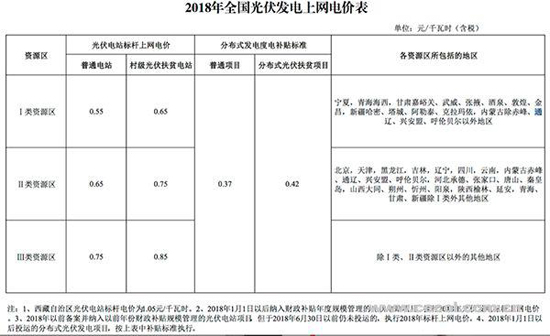 為落實國務院辦公廳《能源發(fā)展戰(zhàn)略行動計劃(2014-2020)》關于新能源標桿上網(wǎng)電價逐步退坡的要求,合理引導新能源投資,促進光伏發(fā)電產(chǎn)業(yè)健康有序發(fā)展,決定調整2018年光伏發(fā)電標桿上網(wǎng)電價政策。經(jīng)商國家能源局,現(xiàn)就有關事項通知如下: