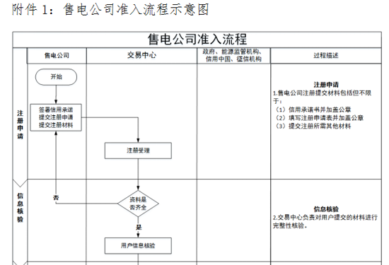 第九條[信息公示]每月月初前5個(gè)工作日內(nèi),交易中心對(duì)上月提交申請(qǐng)并審核通過的售電公司,在交易系統(tǒng)上公示1個(gè)月(待條件成熟后,一并通過“信用中國(guó)”網(wǎng)進(jìn)行公示)。逾期提交申請(qǐng)的售電公司轉(zhuǎn)入下月公示。