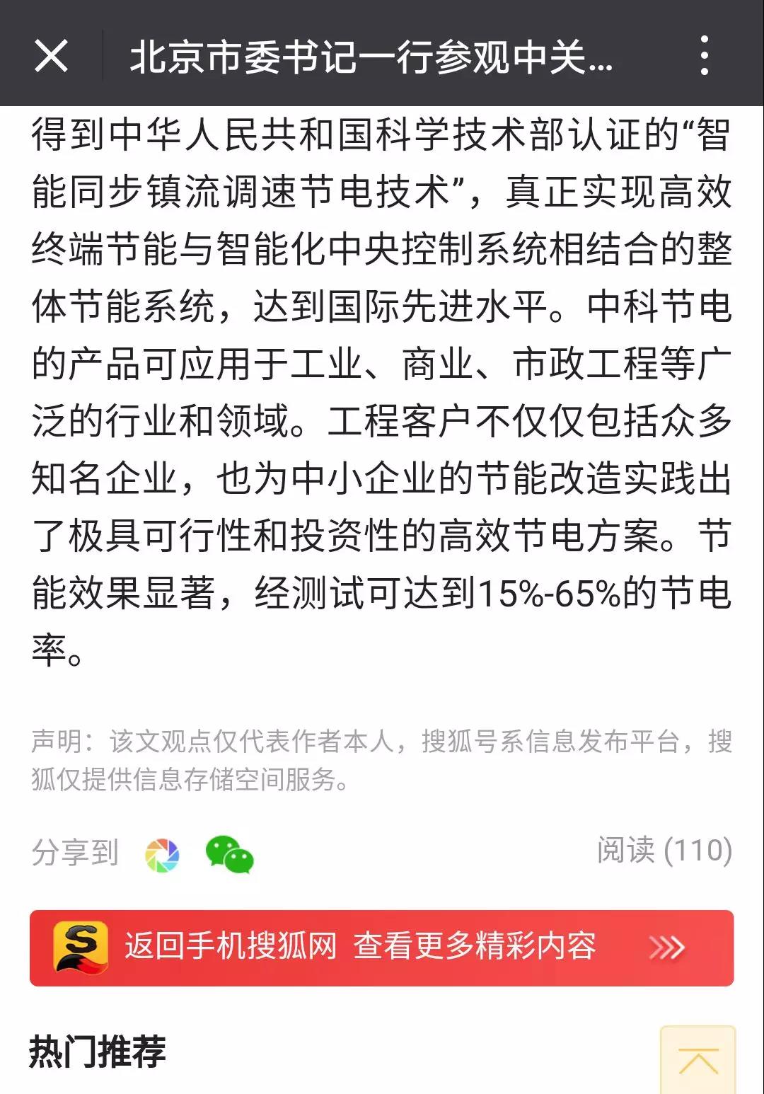 厲害了!中科節(jié)電技術(shù)在科博會上備受北京領(lǐng)導(dǎo)關(guān)注,引搜狐新聞報道!
