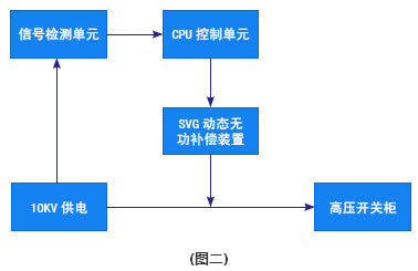 由圖二所示,在10KV高壓開關柜進線處并聯安裝SVG動態無功補償裝置,基本原理是利用可關斷大功率電力電子器件(如IGBT)組成自換相橋式電路,經過電抗器并聯在電網上,適當地調節橋式電路交流側輸出電壓的幅值和相位,或者直接控制其交流側電流,就可以使該電路吸收或者發出滿足要求的無功電流,實現動態無功補償的目的。  |