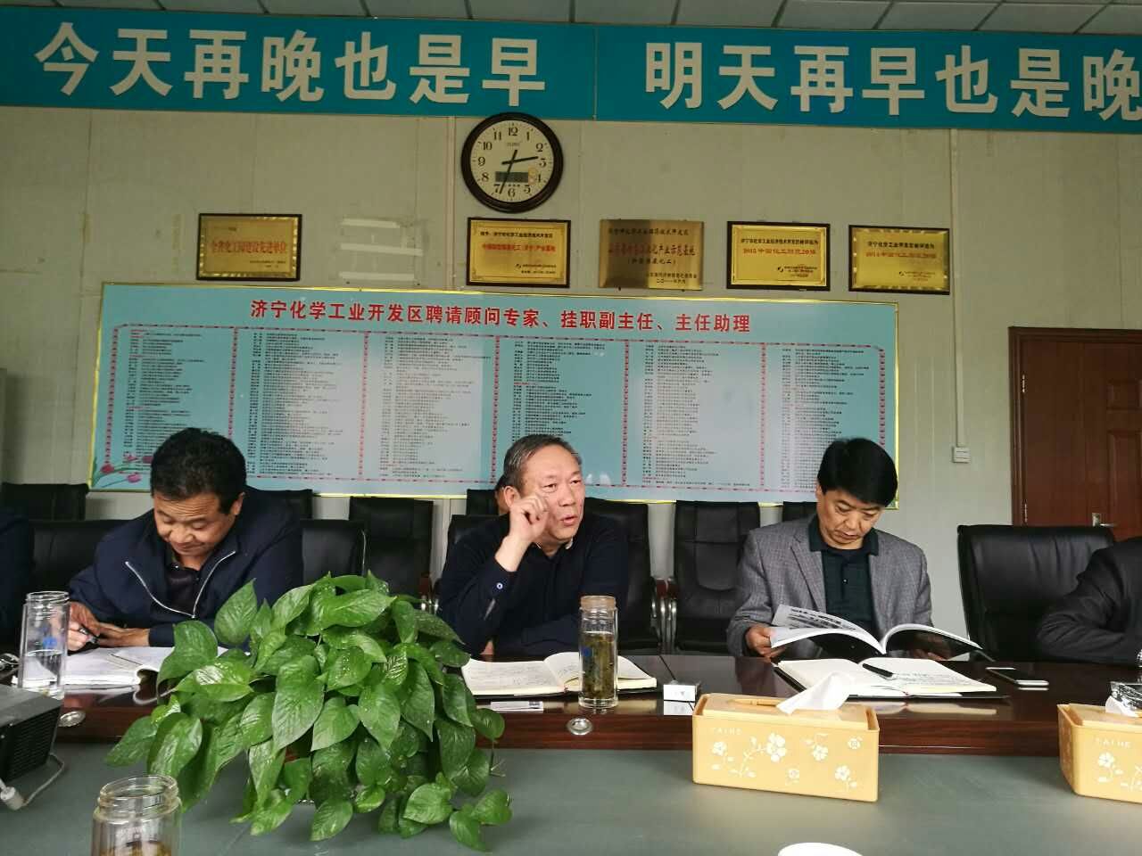 ▲濟(jì)寧化學(xué)工業(yè)開(kāi)發(fā)區(qū)管委會(huì)副主任張?jiān)坪?中)發(fā)表重要講話,管委會(huì)副書記張保新(右)參會(huì)